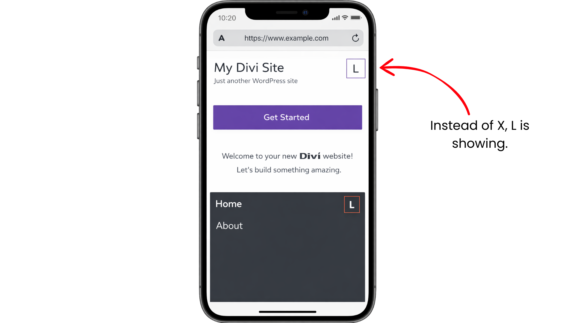 Divi uses a special icon font to display the hamburger menu icon on mobile devices. When this icon font does not load correctly, the browser cannot display the icon and instead shows random letters or symbols (such as “L”, boxes, or strange characters).